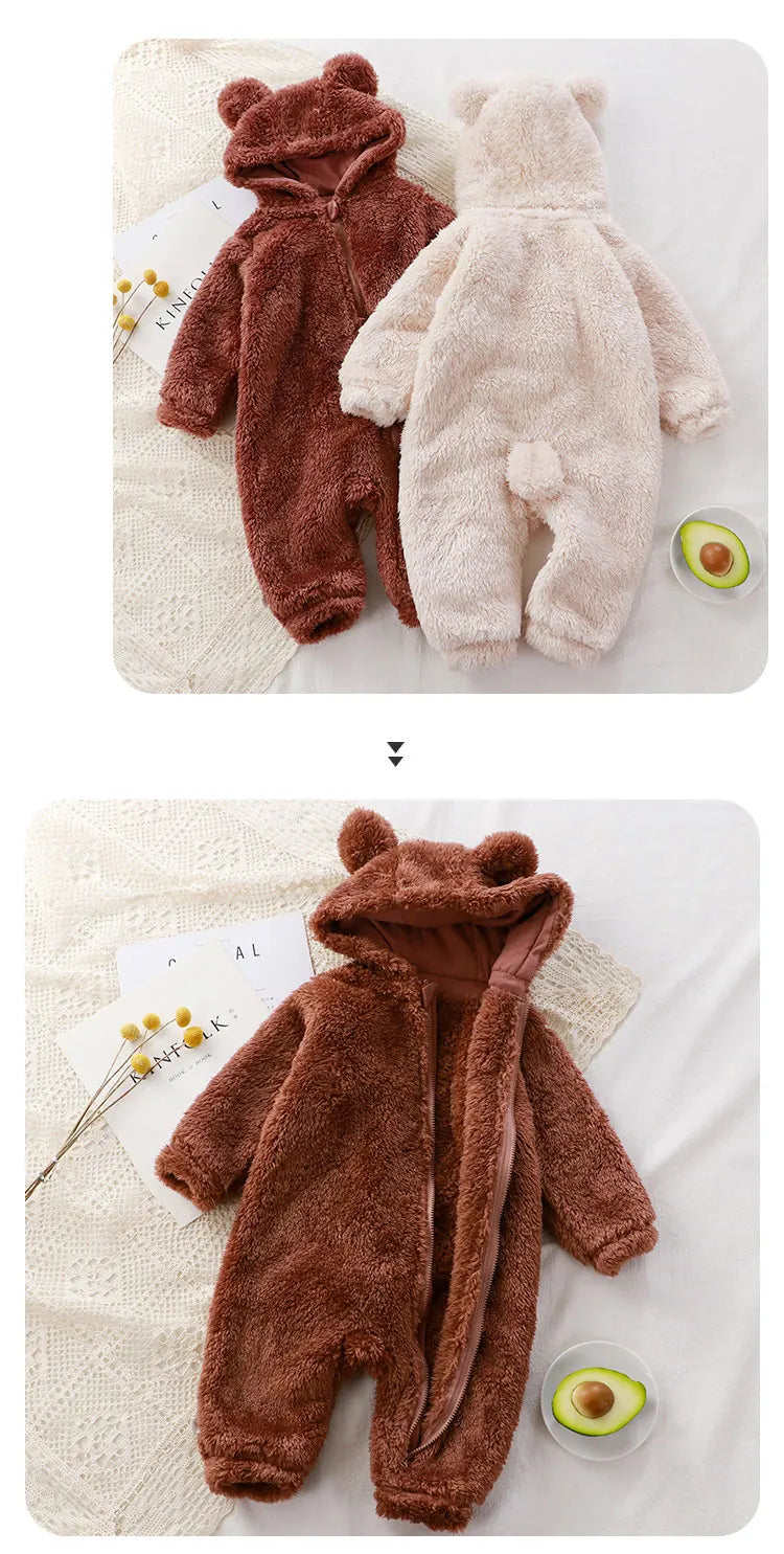 Wrap your little one in ultimate warmth with this thick, hooded baby romper! Made from ultra-soft coral fleece, this cozy jumpsuit features an adorable bear shape design, perfect for keeping your baby snug and cute during chilly winter days. With a comfortable fit and easy snap closures, itβs ideal for both sleep and play. A must-have for newborns and infants!
