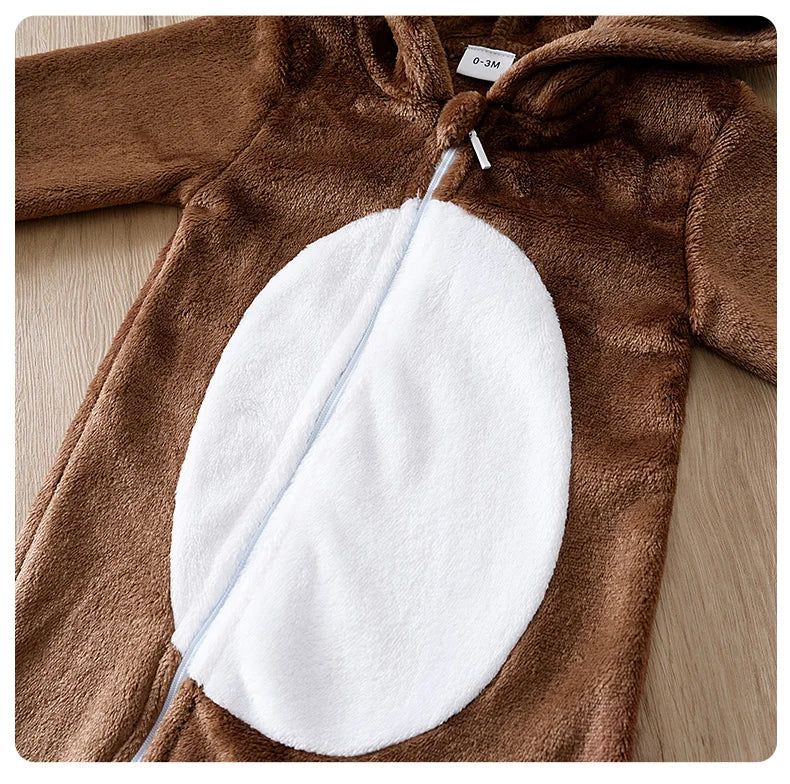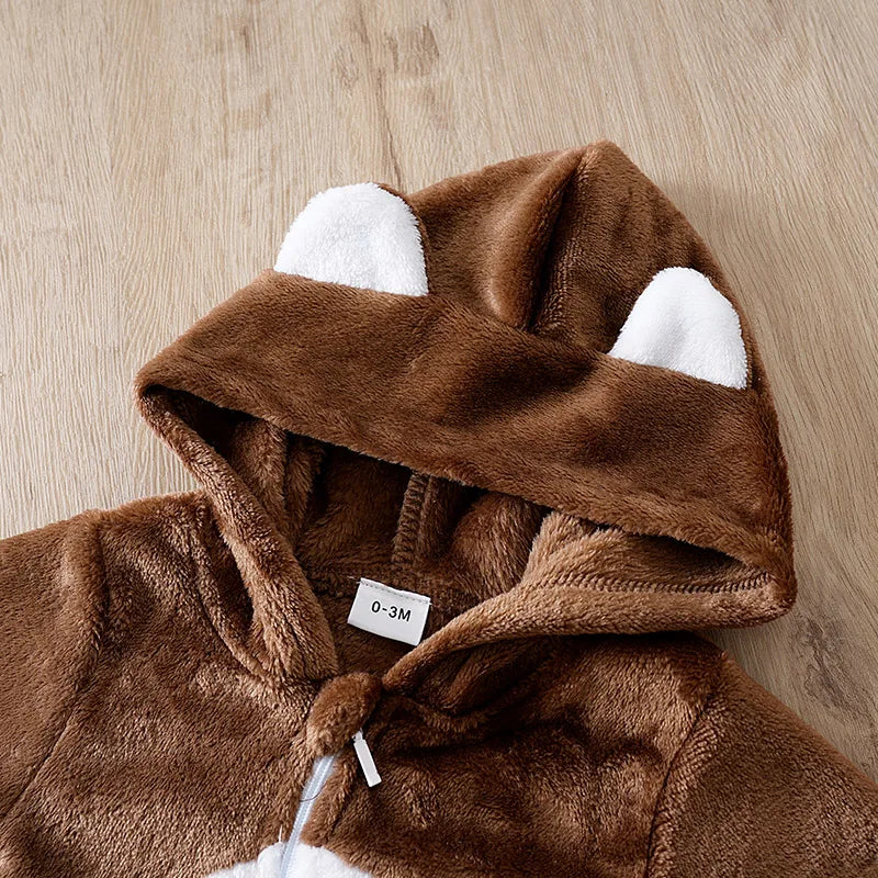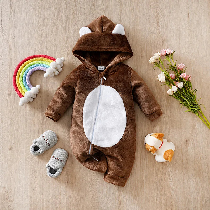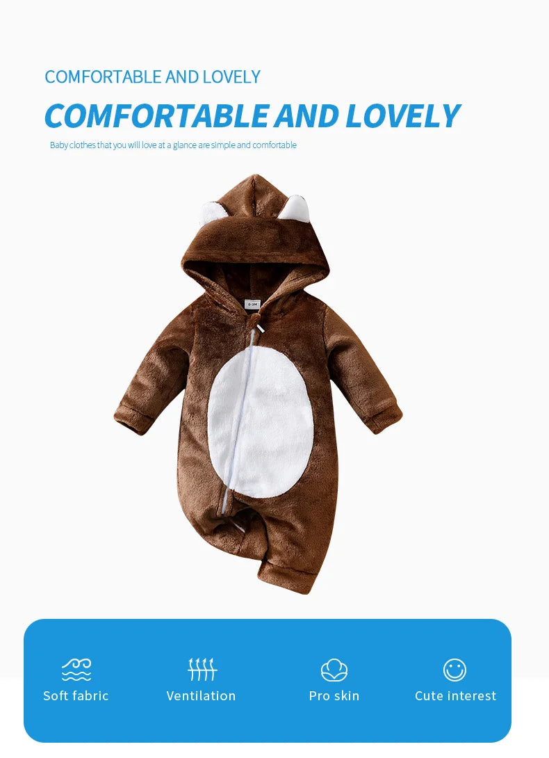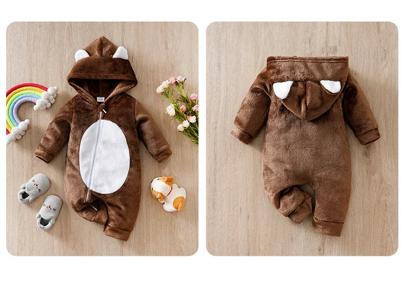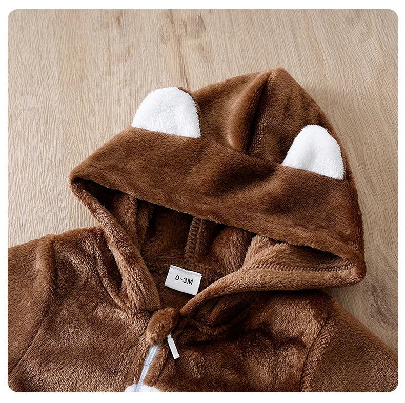 Wrap your little one in warmth with this ultra-cozy bear-themed hooded romper! Designed for babies 0-18 months, this thick, long-sleeve jumpsuit keeps your baby snug and comfortable during chilly days. Made with soft, high-quality fabric, it features a cute bear design and a convenient zipper for easy dressing. Perfect for baby boys and girls, it's an essential winter outfit for your little bundle of joy!