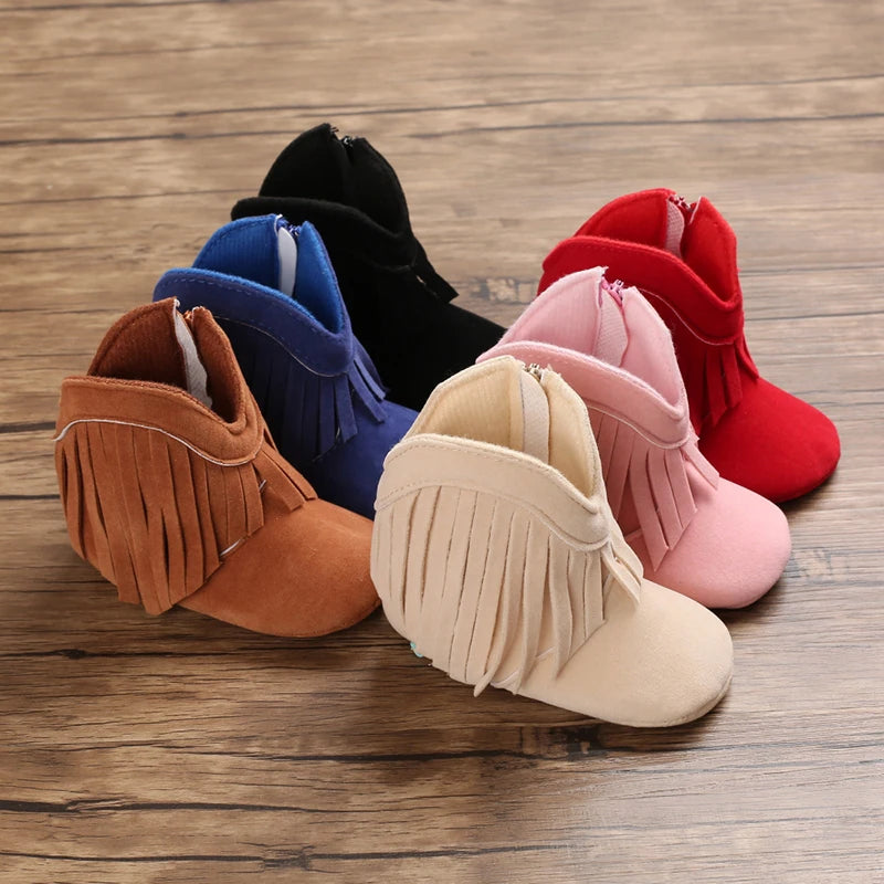 Keep tiny toes warm and stylish with these vintage tassel baby booties! Designed with a soft, anti-slip sole for safety, these adorable winter shoes provide ultimate warmth and comfort for baby boys and girls. Perfect for casual wear or special occasions, these booties add a charming touch to any outfit while keeping little feet cozy all season long.