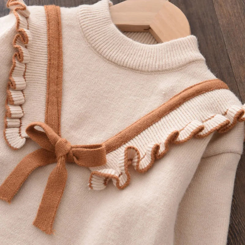 Keep your little one warm and stylish with this adorable autumn-winter outfit! Featuring a thick knitted long-sleeve sweater with a cute bow detail and matching pants, this set is perfect for baby girls. Soft, cozy, and fashionable, it’s ideal for chilly days, casual outings, and special moments!
