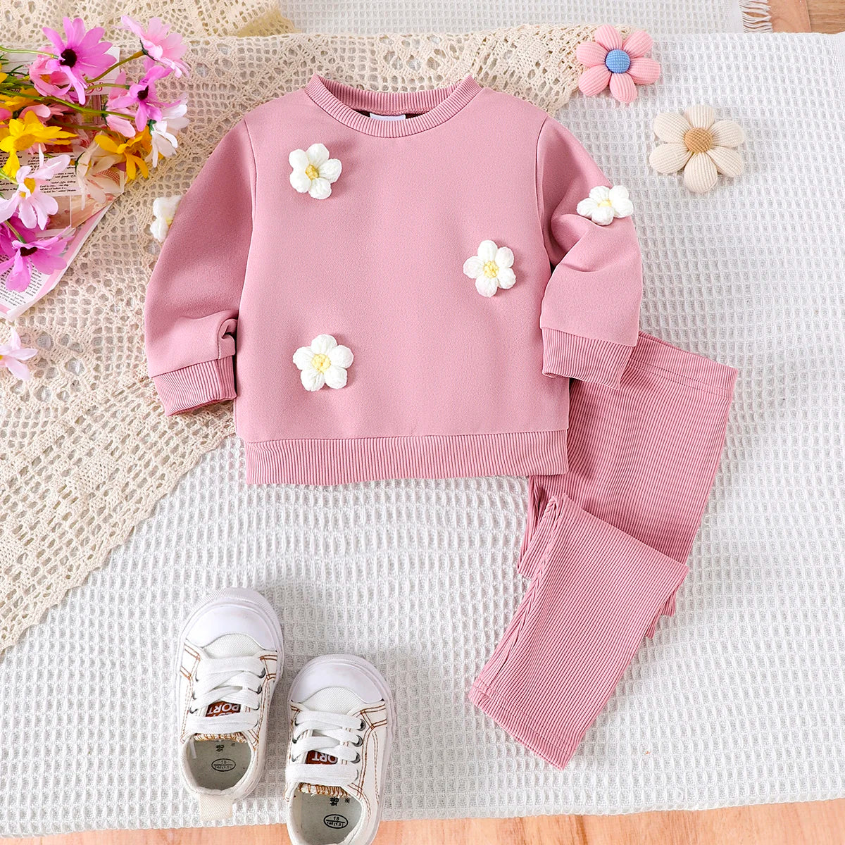 Keep your little one cozy and stylish with this adorable 2-piece set! Featuring a soft pink hoodie with a delicate flower design and matching pants, this outfit is perfect for baby girls aged 0-3 years. Comfortable, simple, and fashionable, itβs ideal for autumn playtime, outings, or everyday wear!