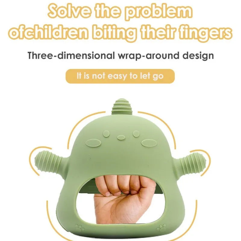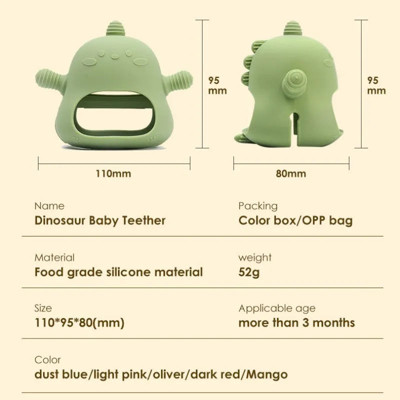 Make teething fun with the Dino Chew bracelet teether! Shaped like a cute cartoon dinosaur, this BPA-free, food-grade silicone toy is soft, safe, and easy for tiny hands to grip. Doubles as a wearable bracelet, perfect for on-the-go soothing. Gentle on gums and great for sensory play—your little one will love chewing on this dino buddy!