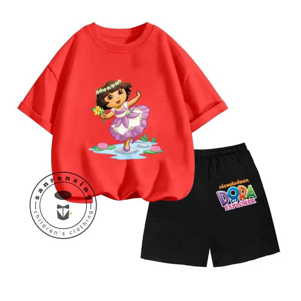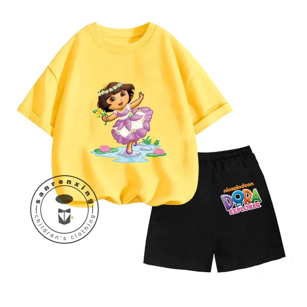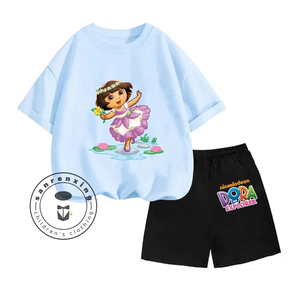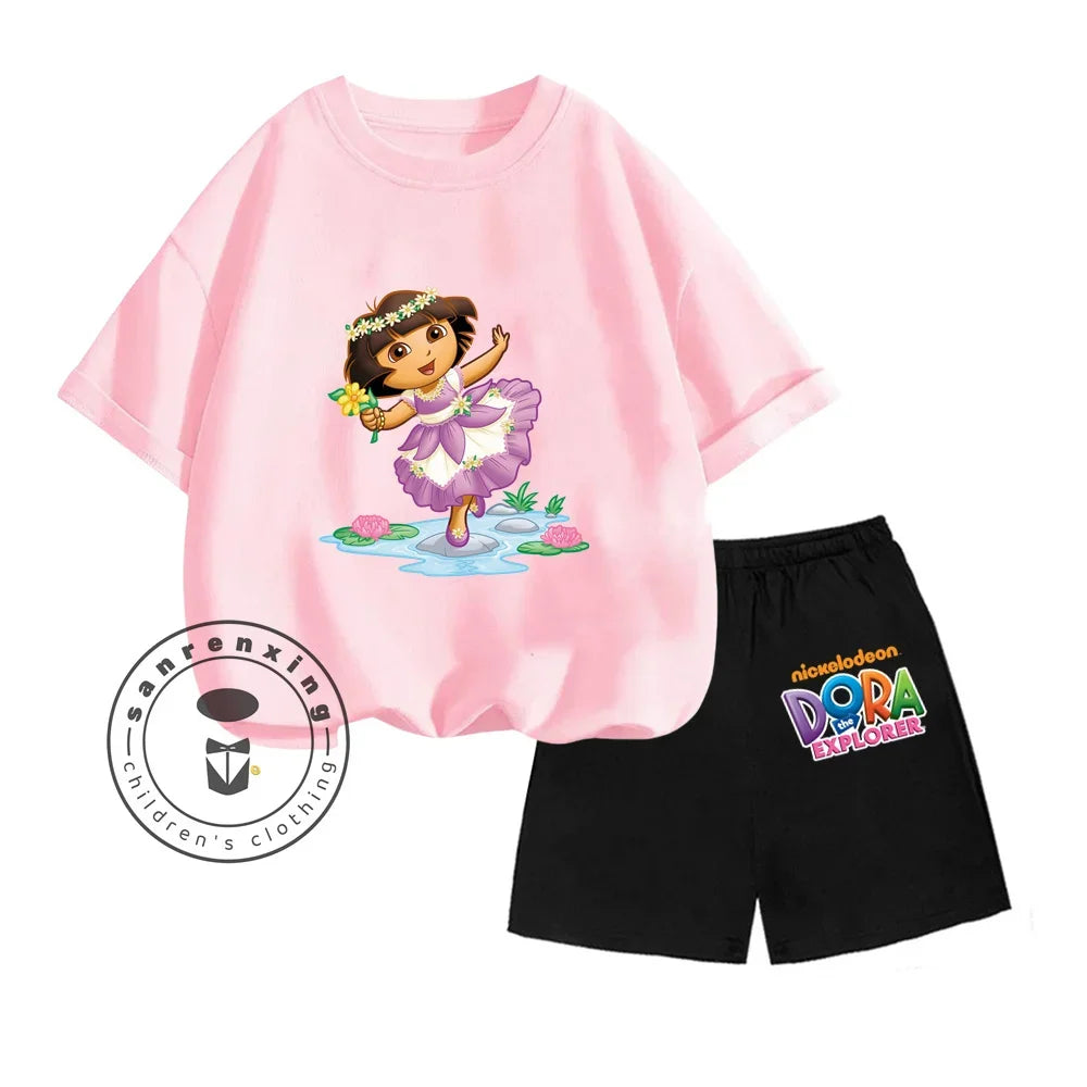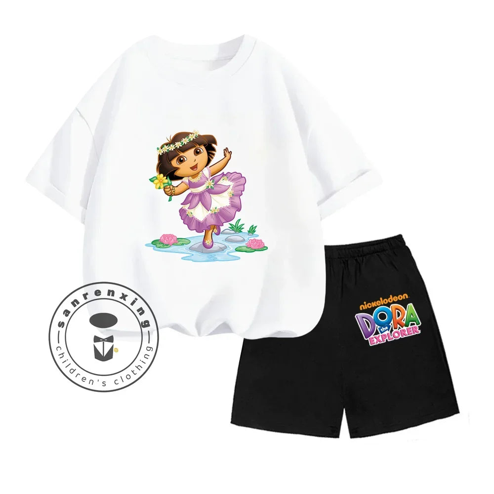 Let your little adventurer explore in style with this Dora The Explorer classic O-neck short sleeve t-shirt! Made from soft, breathable fabric, this tee features a vibrant animated print of Dora and her friends, making it a perfect choice for casual wear, playtime, or themed events. Comfortable and lightweight, it's ideal for everyday adventures!