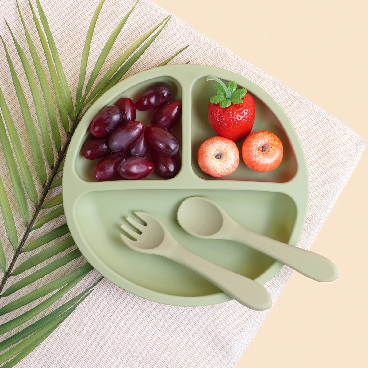 Mealtime is easier (and cuter) with the Fun Bites Dining Set! This 3-piece toddler-friendly set includes a suction plate with a playful cartoon design, plus a matching spoon and fork. Made from BPA-free, food-grade silicone, itβs safe, durable, and perfect for training little hands to self-feed with confidence.