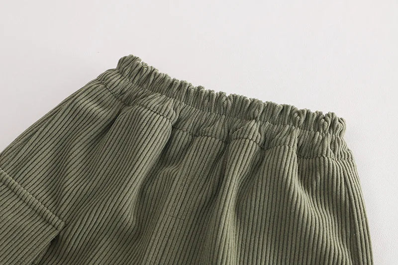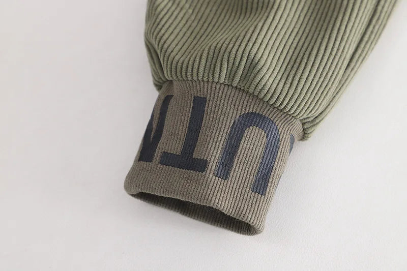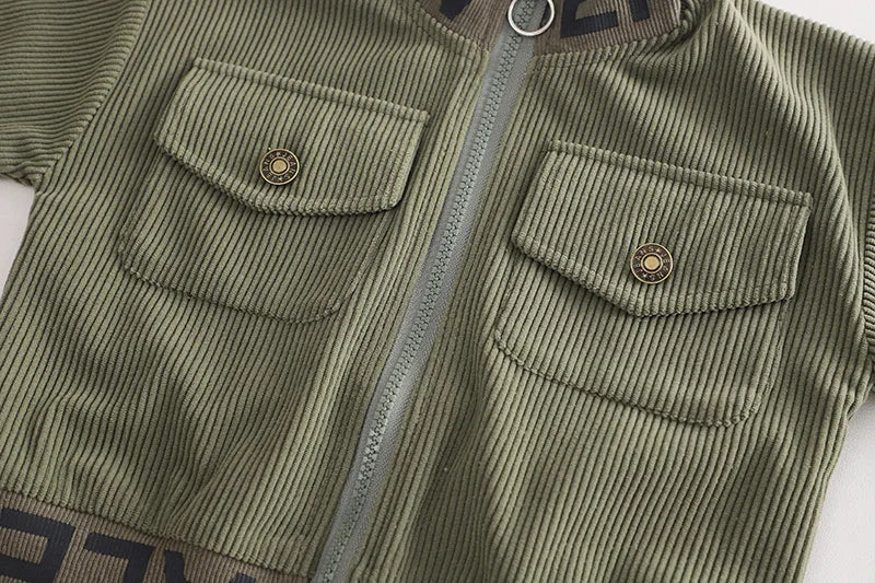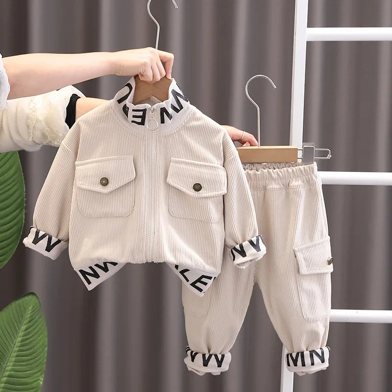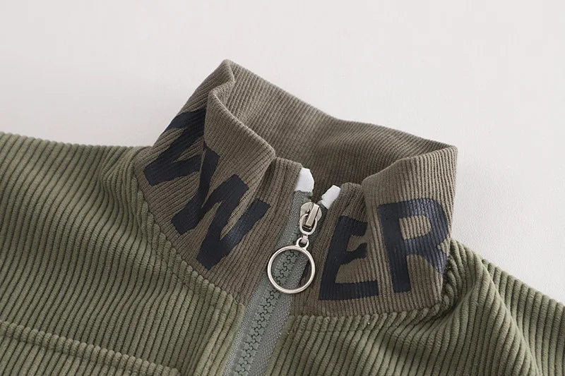 Keep your little one stylish and cozy with this trendy 2-piece outfit! Featuring a letter-print standing collar corduroy jacket and matching pants, this set is perfect for boys and girls in spring. Soft, fashionable, and comfortable, it's ideal for outings, playtime, and casual wear!