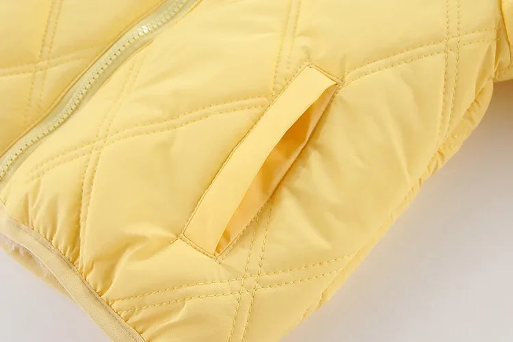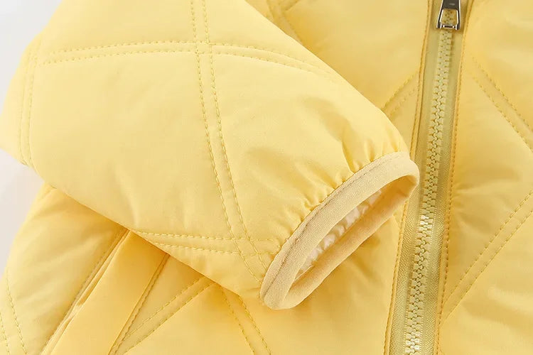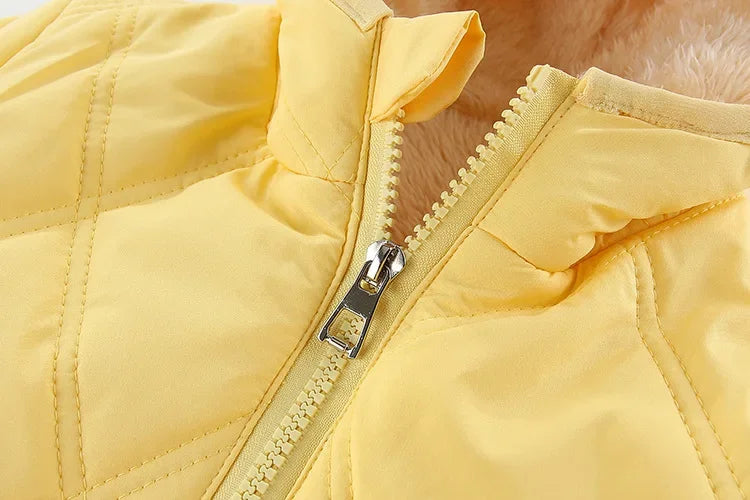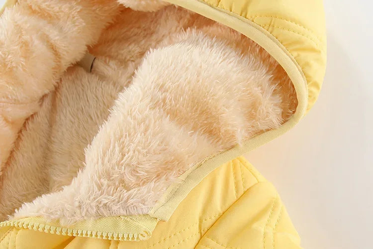 Keep your little girl warm and cozy with this thick cotton-padded winter jacket! Lined with soft velvet for extra comfort, this hooded coat is designed to keep out the cold while ensuring style and warmth. Perfect for chilly days, itβs a must-have outerwear piece for kids who love to stay snug in winter!