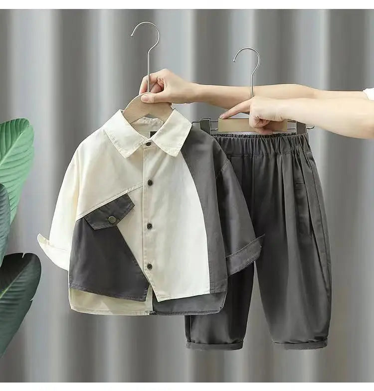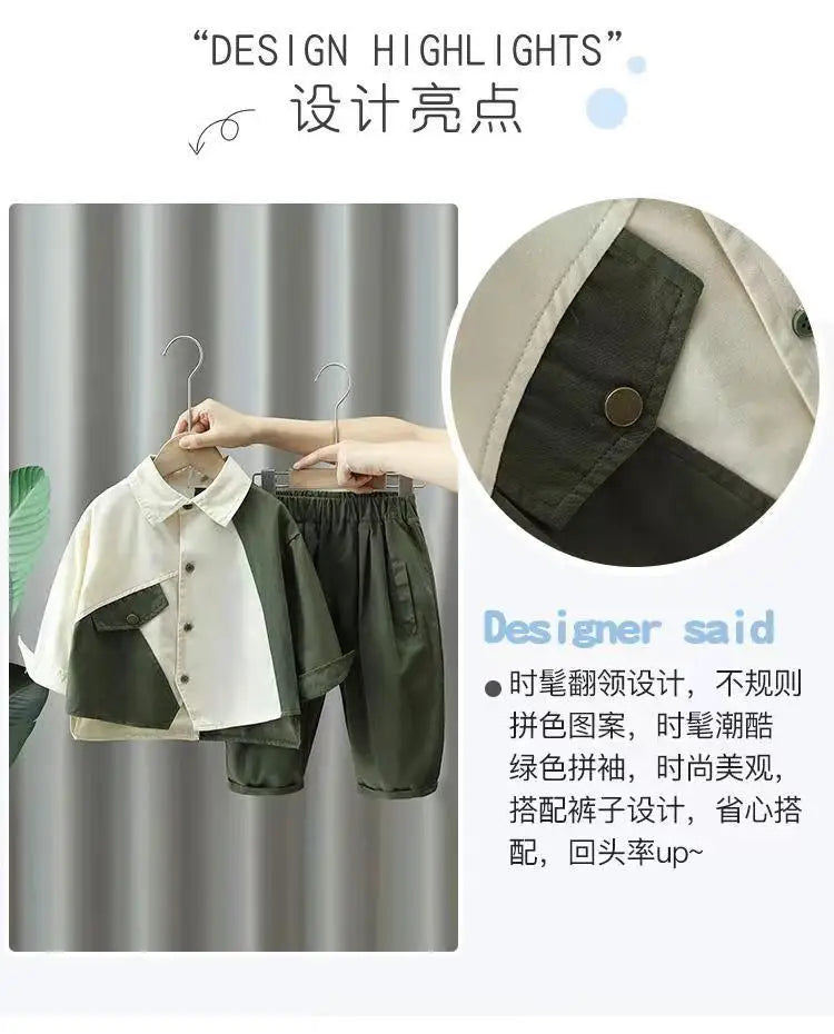 Dress your little one in style with this trendy boys' 2-piece set! Featuring a loose-fit long-sleeve shirt and matching pants, this outfit is perfect for spring and autumn. Comfortable, fashionable, and effortlessly cool, it’s ideal for casual outings, playdates, or everyday wear!