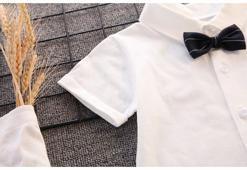 Dress your little one in style with this adorable summer formal outfit! Featuring a short-sleeve button-up shirt and matching shorts, this 2-piece set is perfect for birthdays, parties, and special occasions. Lightweight, breathable, and comfortable—your baby boy will look charming all day long!